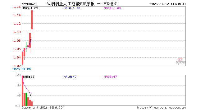 科创创业人工智能ETF摩根(588420)业绩比较基准为中证科创创业人工智能指数收益率,管理人为摩根基金管理(中国)有限公司,基金经理为曲蕾蕾,成立(2025-12-17)以来回报为9.75%。