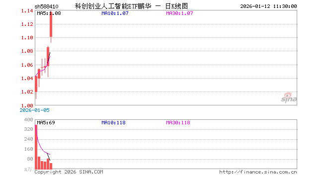 1月12日,截止午间收盘,科创创业人工智能ETF鹏华(588410)涨4.79%,报1.137元,成交额5365.23万元。科创创业人工智能ETF鹏华(588410)重仓股方面,中际旭创截止午盘涨0.07%,新易盛跌2.97%,澜起科技涨0.44%,寒武纪涨3.35%,金山办公涨7.77%,芯原股份涨3.13%,润泽科技涨15.90%,北京君正涨0.96%,昆仑万维涨19.99%,协创数据涨1.24%。