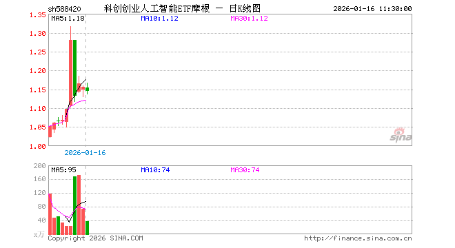 科创创业人工智能ETF摩根(588420)业绩比较基准为中证科创创业人工智能指数收益率,管理人为摩根基金管理(中国)有限公司,基金经理为曲蕾蕾,成立(2025-12-17)以来回报为15.13%。