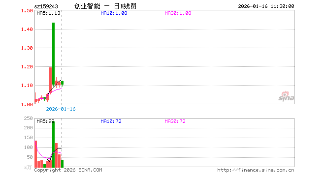 1月16日,截止午间收盘,创业板人工智能ETF招商(159243)跌1.16%,报1.103元,成交额3990.20万元。创业板人工智能ETF招商(159243)重仓股方面,中际旭创截止午盘涨0.35%,新易盛跌0.18%,天孚通信涨3.09%,同花顺跌2.01%,润和软件跌3.95%,北京君正涨3.82%,润泽科技跌0.72%,昆仑万维跌8.60%,蓝色光标跌8.85%,长芯博创涨3.97%。