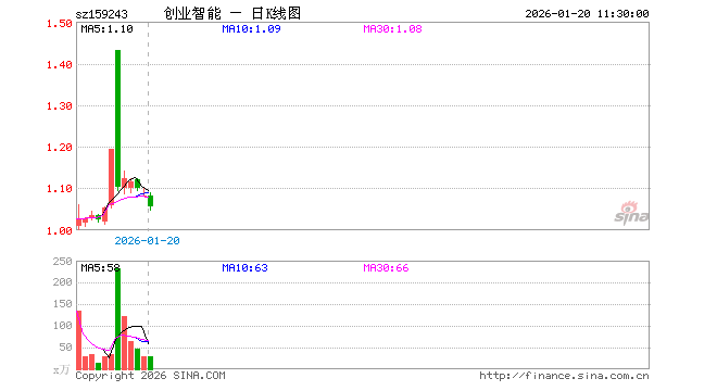 1月20日,截止午间收盘,创业板人工智能ETF招商(159243)跌2.59%,报1.055元,成交额3000.99万元。创业板人工智能ETF招商(159243)重仓股方面,中际旭创截止午盘跌3.92%,新易盛跌6.12%,天孚通信跌5.20%,同花顺跌1.73%,润和软件跌1.77%,北京君正涨3.39%,润泽科技跌0.10%,昆仑万维跌1.82%,蓝色光标涨6.68%,长芯博创跌2.25%。