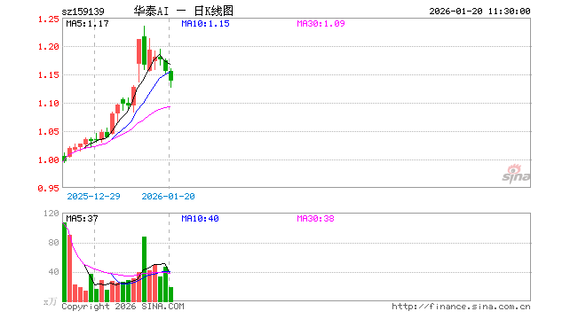 1月20日,截止午间收盘,科创创业人工智能ETF华泰柏瑞(159139)跌1.47%,报1.138元,成交额2201.32万元。科创创业人工智能ETF华泰柏瑞(159139)重仓股方面,新易盛截止午盘跌6.12%,中际旭创跌3.92%,澜起科技涨4.79%,寒武纪跌3.93%,金山办公跌2.14%,芯原股份跌1.53%,润泽科技跌0.10%,昆仑万维跌1.82%,协创数据跌1.38%,北京君正涨3.39%。