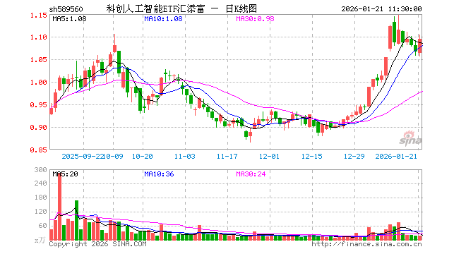 1月21日,截止午间收盘,科创人工智能ETF汇添富(589560)涨2.63%,报1.094元,成交额1830.66万元。科创人工智能ETF汇添富(589560)重仓股方面,寒武纪截止午盘涨2.10%,澜起科技涨7.71%,金山办公涨0.09%,石头科技涨0.27%,芯原股份涨3.87%,晶晨股份涨0.97%,恒玄科技涨5.96%,云天励飞涨8.52%,复旦微电涨1.96%,乐鑫科技涨2.03%。