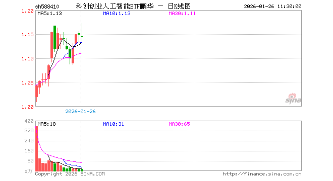 科创创业人工智能ETF鹏华(588410)业绩比较基准为中证科创创业人工智能指数收益率,管理人为鹏华基金管理有限公司,基金经理为林嵩,成立(2025-12-17)以来回报为14.94%,近一个月回报为14.94%。