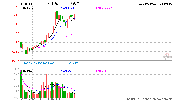 1月27日,截止午间收盘,科创创业人工智能ETF永赢(159141)涨0.88%,报1.151元,成交额3836.33万元。科创创业人工智能ETF永赢(159141)重仓股方面,中际旭创截止午盘涨5.61%,新易盛涨4.28%,寒武纪涨0.37%,澜起科技涨1.15%,金山办公跌0.14%,芯原股份跌0.00%,润泽科技跌2.67%,协创数据涨9.06%,昆仑万维跌2.09%,北京君正涨5.58%。