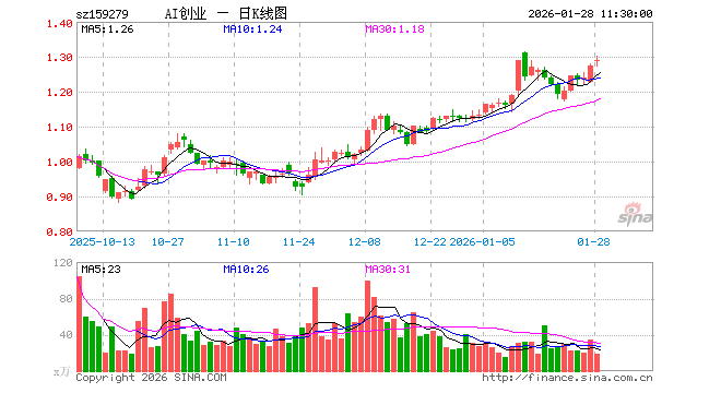 1月28日,截止午间收盘,创业板人工智能ETF华安(159279)涨1.18%,报1.289元,成交额2368.70万元。创业板人工智能ETF华安(159279)重仓股方面,中际旭创截止午盘涨2.50%,新易盛涨0.08%,天孚通信涨1.09%,蓝色光标跌1.71%,协创数据跌3.36%,同花顺涨0.79%,润和软件涨0.02%,北京君正涨8.72%,润泽科技涨1.67%,昆仑万维跌0.18%。