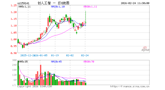 科创创业人工智能ETF永赢(159141)业绩比较基准为中证科创创业人工智能指数收益率,管理人为永赢基金管理有限公司,基金经理为蔡路平,成立(2025-12-03)以来回报为11.36%,近一个月回报为-0.46%。