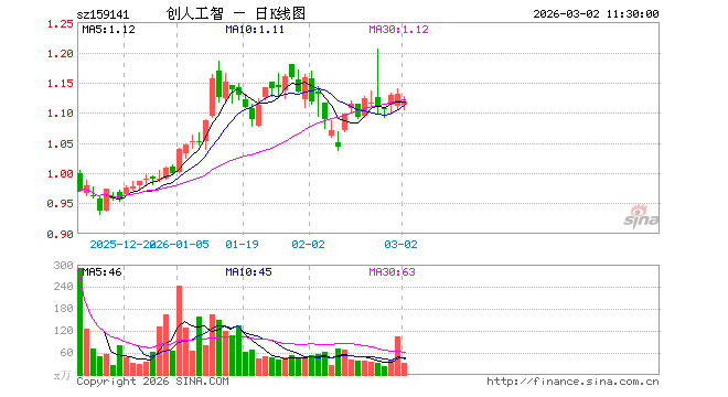 3月2日,截止午间收盘,科创创业人工智能ETF永赢(159141)跌1.06%,报1.118元,成交额3542.70万元。科创创业人工智能ETF永赢(159141)重仓股方面,中际旭创截止午盘涨6.74%,新易盛涨5.16%,寒武纪跌0.00%,澜起科技跌2.05%,金山办公跌2.05%,芯原股份跌1.55%,润泽科技跌3.76%,协创数据跌4.43%,昆仑万维跌4.39%,北京君正跌2.38%。