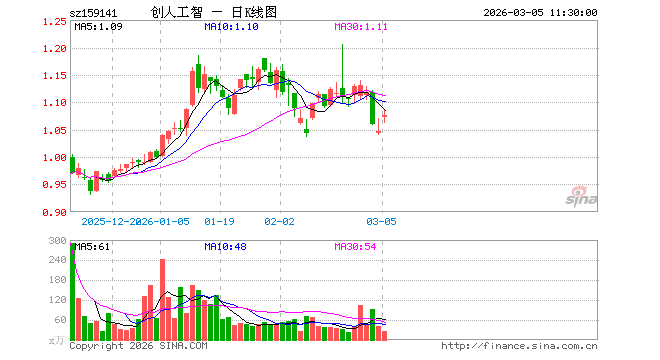 3月5日,截止午间收盘,科创创业人工智能ETF永赢(159141)涨2.67%,报1.075元,成交额2810.44万元。科创创业人工智能ETF永赢(159141)重仓股方面,中际旭创截止午盘涨6.39%,新易盛涨11.75%,寒武纪涨4.88%,澜起科技涨2.40%,金山办公涨0.21%,芯原股份涨4.98%,润泽科技跌0.42%,协创数据涨1.53%,昆仑万维涨1.99%,北京君正涨3.23%。