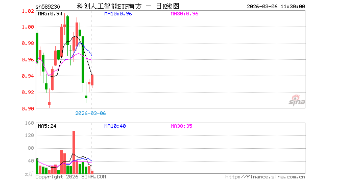 3月6日,截止午间收盘,科创人工智能ETF南方(589230)涨0.97%,报0.941元,成交额867.13万元。科创人工智能ETF南方(589230)重仓股方面,芯原股份截止午盘涨1.29%,澜起科技涨0.05%,金山办公涨0.75%,寒武纪跌0.26%,中科星图涨2.07%,石头科技涨0.00%,复旦微电跌0.24%,晶晨股份涨2.71%,恒玄科技涨0.88%,云天励飞跌0.67%。