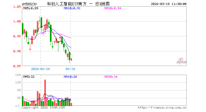 3月18日,截止午间收盘,科创人工智能ETF南方(589230)涨0.58%,报0.874元,成交额1194.13万元。科创人工智能ETF南方(589230)重仓股方面,芯原股份截止午盘涨0.03%,澜起科技涨3.94%,金山办公跌0.37%,寒武纪跌2.47%,中科星图涨1.86%,石头科技跌1.11%,复旦微电涨6.01%,晶晨股份涨1.29%,恒玄科技跌1.14%,云天励飞涨1.02%。