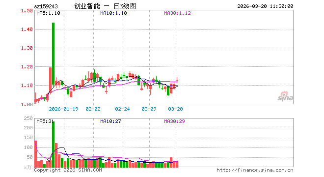 3月20日,截止午间收盘,创业板人工智能ETF招商(159243)涨1.90%,报1.127元,成交额3234.99万元。创业板人工智能ETF招商(159243)重仓股方面,中际旭创截止午盘涨8.50%,新易盛涨9.67%,天孚通信涨3.84%,同花顺跌0.74%,润和软件跌2.77%,北京君正涨1.66%,润泽科技跌2.08%,昆仑万维涨1.66%,蓝色光标跌0.80%,长芯博创涨4.49%。