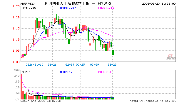 科创创业人工智能ETF工银(588430)业绩比较基准为中证科创创业人工智能指数收益率,管理人为工银瑞信基金管理有限公司,基金经理为杨广钊,成立(2025-12-17)以来回报为6.38%,近一个月回报为-7.26%。