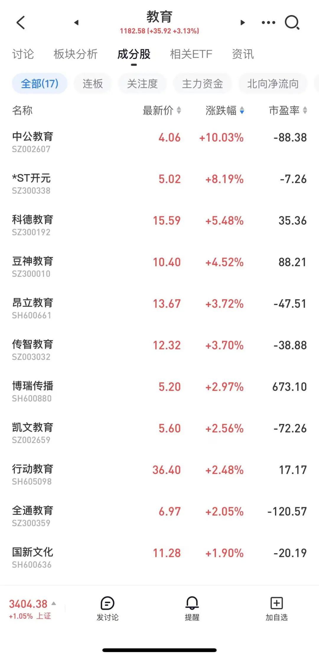 板块方面,今日传媒、教育板块领涨,福石控股、读者传媒等多股涨停。