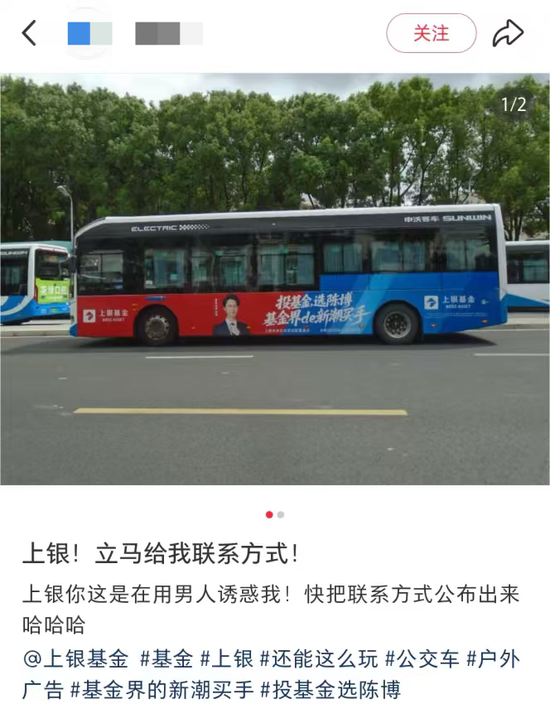 不久前,上银基金在不少商场外墙和公交车上投了巨幅广告,印着大大的文字“投基金,选陈博,基金界de新潮买手”,还配了一张基金经理的照片。
