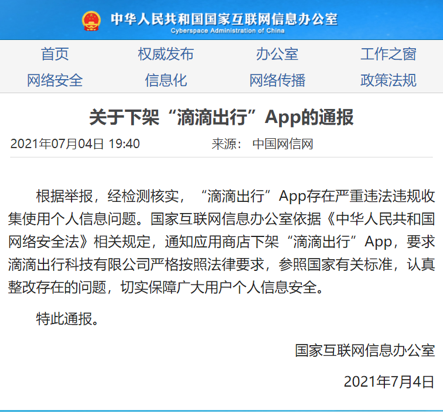 7月2日,国家网络安全审查办公室宣布对“滴滴出行”启动网络安全审查,暂停其新用户注册,瞬间,滴滴站上了风口浪尖。