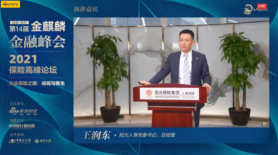 12月14日消息,由新浪财经主办的“第14届金麒麟金融峰会”于12月13日-17日隆重举行,主题论坛“2021金麒麟保险高峰论坛”今日召开。阳光人寿党委书记、总经理 王润东在论坛上发表了题为《从高速度向高质量发展迈进》的主题演讲。