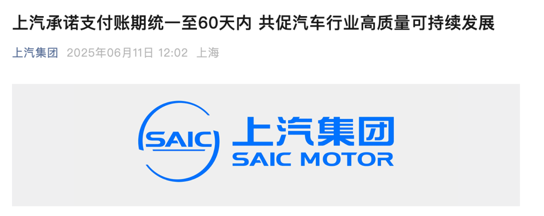 6月10日晚间,广汽集团、中国一汽、东风汽车、赛力斯等车企也承诺将供应商账期缩短至60天以内。