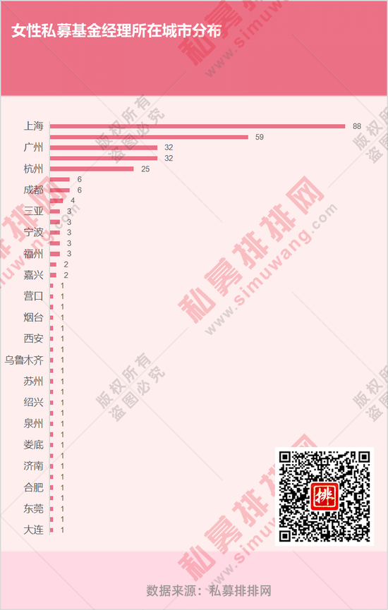 一线与新一线城市吸纳了数量众多的女性基金经理,北上广深杭等五城的女性基金经理数人数有148位,数量占比达到八成。