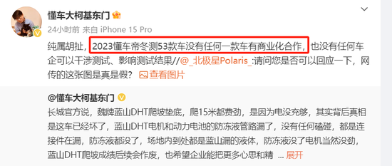 冬测风波后懂车帝曾回应称,所有参与车辆在整备后编队行驶出发,使用统一标准,符合用户冬季用车场景,不存在区别对待。