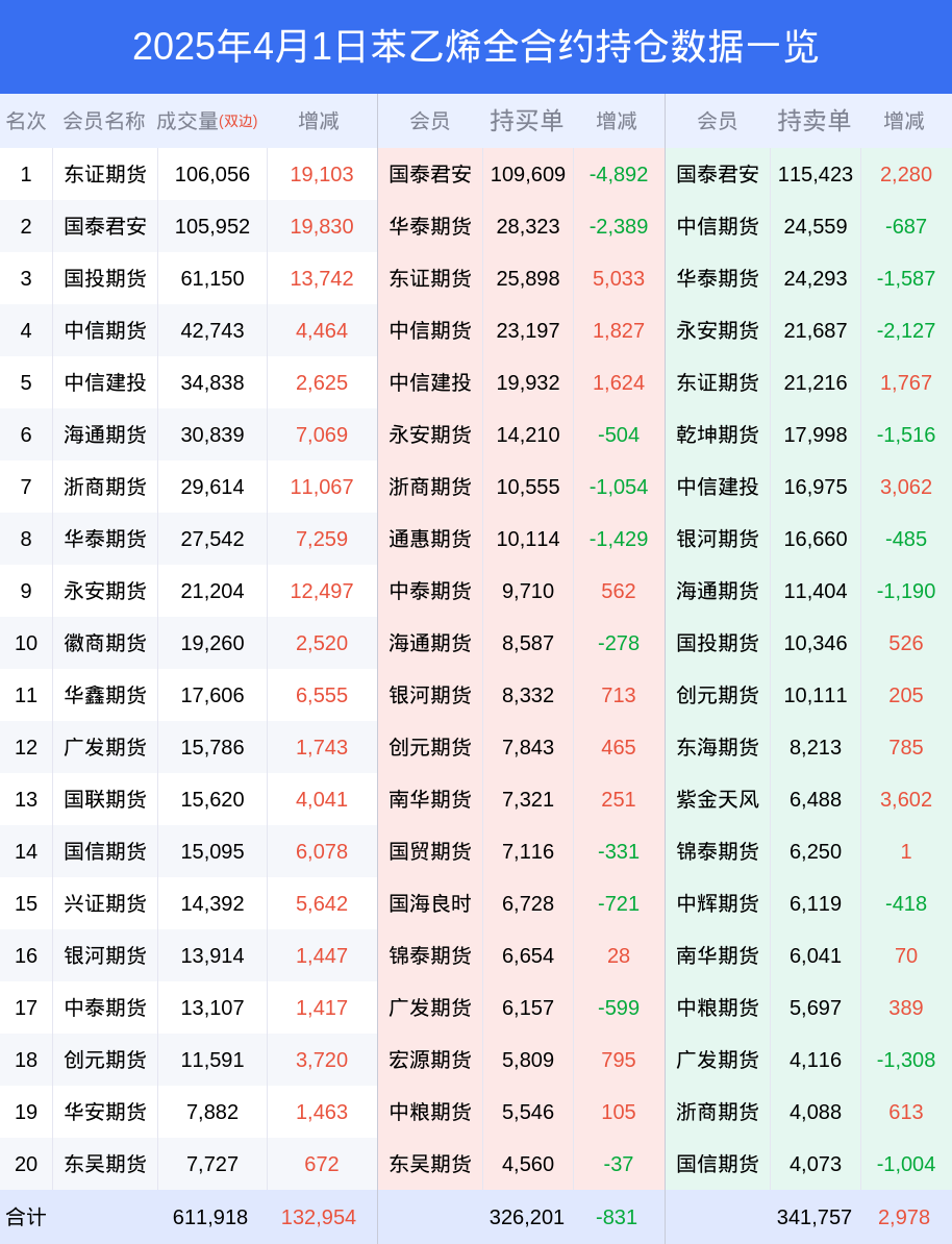苯乙烯期货全合约总计成交46.72万手,比上一日新增9.39万手。全合约前20席位多头持仓36.54万手,比上一日增加751手。全合约前20席位空头持仓37.66万手,比上一日增加5052手。