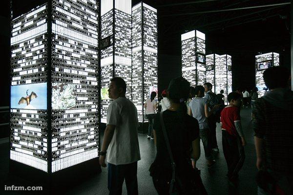 对面的首尔馆则打开空间,露出一面巨型高清屏幕,一部以鹰的视野制作的动画,让观众们从首尔的上空掠过,穿过清溪川的水面,与首尔街头的普通人群融为一体。此外,首尔馆还大秀美女,一个有趣的绘画机颇具人气,坐在这个机器前,摄像头会捕捉你的面孔,屏幕上却会显现出不断生成的油画肖像,稍等片刻,一张带有“2010世博会留影”的油画效果的肖像照片就会被打印出来。