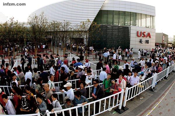 有人在到处询问“美国馆”,有人则高声呼喊着“USA”,美国馆的呼声之高由此可见一斑。其实,美国已经有好几届不参加世博会了。这次本来也不打算参加,因为美国财政无法出资建馆,更不能像沙特阿拉伯那样出手大方。后来,在美的华侨提出,“美国政府不出这笔费用我们来出”。几经波折,美国终于走进了上海世博会。建馆费用来自企业赞助,其中也不乏中国企业。