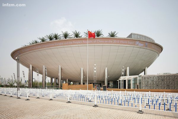 沙特国家馆的建造花费了“仅10亿元人民币”,它是一艘长91米、宽47米的双曲面“月亮船”,源自阿拉伯神话,“月亮船”下演出阿拉伯歌舞,船顶是枣椰树林组成的阿拉伯花园……