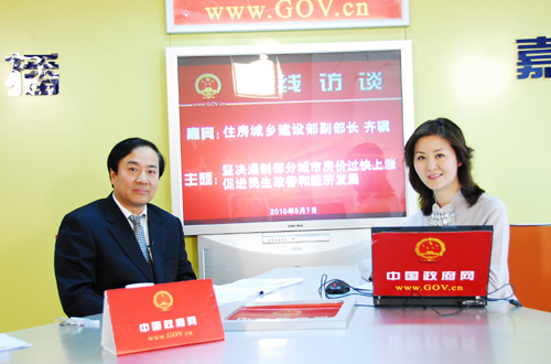 2010年5月7日15时,住房城乡建设部副部长齐骥就“坚决遏制部分城市房价过快上涨,促进民生改善和经济发展”进行现场解读并回答网民提问。