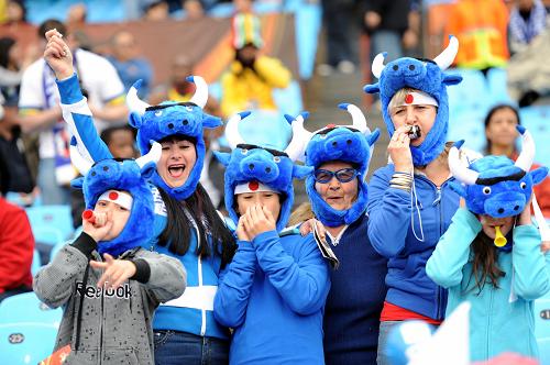 6月29日,日本队“外援”球迷在赛前加油助威。当日,在茨瓦内举行的2010年南非世界杯八分之一决赛中,日本队对阵巴拉圭队。新华社记者郭勇摄