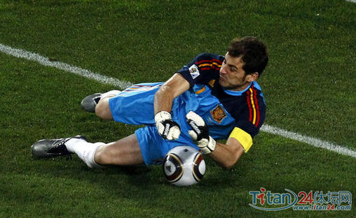 本届世界杯上,卡西利亚斯的状态和西班牙保持一样的轨迹,斗牛士军团在小组赛首轮0-1意外告负,卡西也被指责因为主持人女友萨拉在场边报道而分心。不过稍作调整之后,卡西恢复了自己的最佳状态,一路护佑西班牙队进入决赛。1/4决赛中扑出巴拉圭点球,更是至关重要。