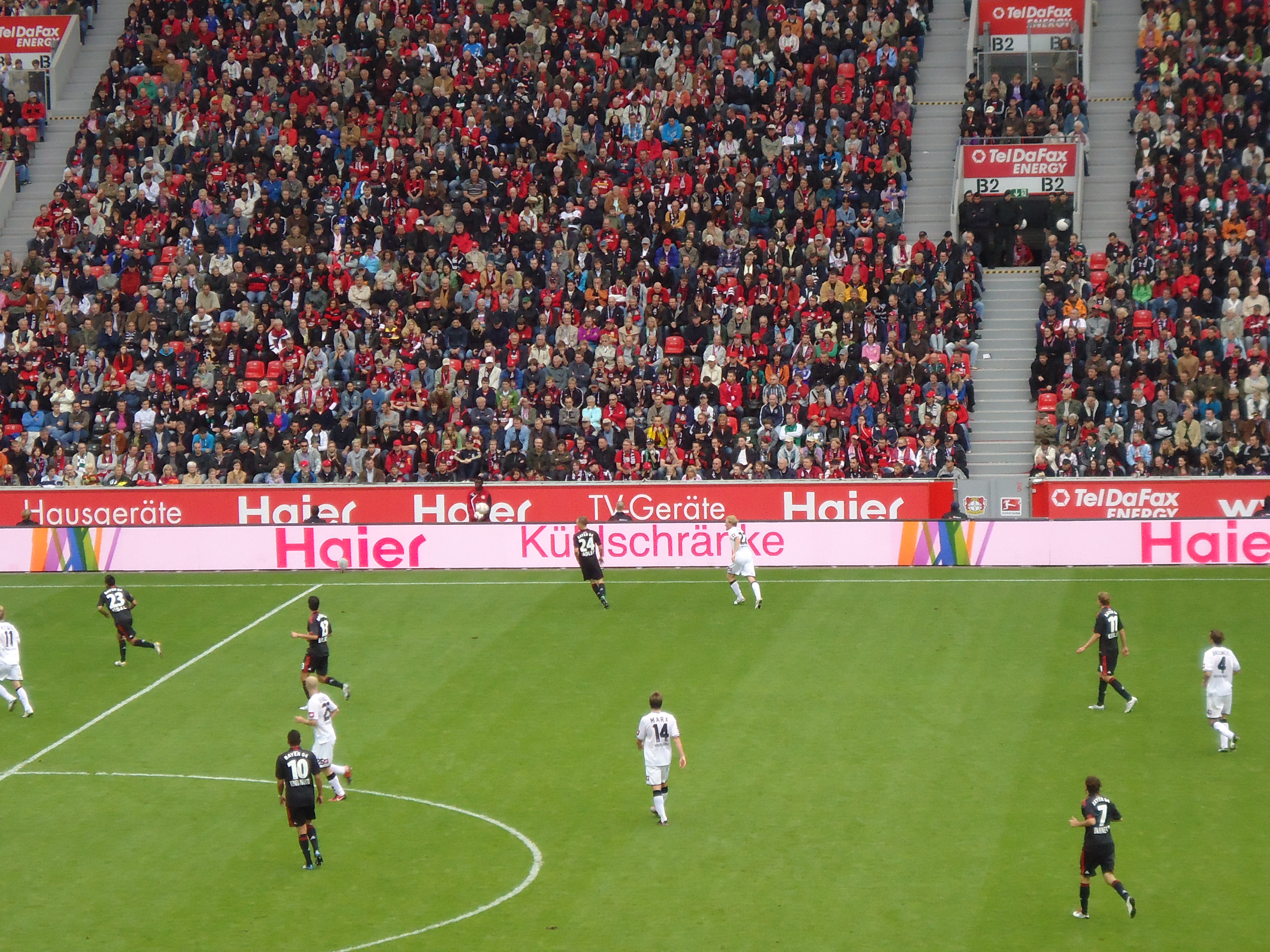 德国勒沃库森足球队主场比赛现海尔logo