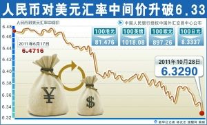 在接连突破几大关口之后,昨日人民币对美元汇率再破6.33。据中国外汇交易中心的最新数据显示,10月28日人民币对美元汇率中间价报6.3290元,创下汇改以来新高。