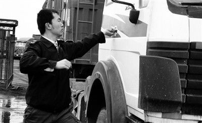 在甘其毛都口岸的原煤通道上,乌拉特出入境检验检疫局工作人员李丕儒正专注地检查车辆。 本报记者 董碧娟摄