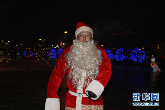 圣诞老人向孩子们赠送礼物。新华网记者 石永春 摄