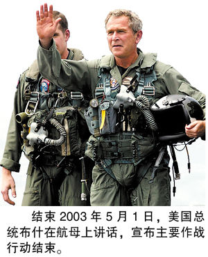 5月1日 时任美国总统布什宣布伊战“主要军事行动结束”;