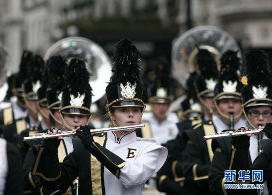 1月1日,在英国首都伦敦,一支来自美国的乐队参加新年巡游。当天,超过8000人参加了伦敦一年一度的新年大巡游,吸引了数十万观众驻足观看。新华社发(高塔姆摄)