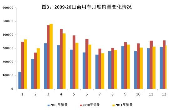 据中国汽车工业协会统计,我国2011年累计生产汽车1841.89万辆,同比增长0.8%,销售汽车1850.51万辆,同比增长2.5%,产销同比增长率较2010年分别下降了31.6和29.9个百分点。其中,乘用车市场保持平稳增长,商用车市场下降较为明显。2011年,乘用车产销分别完成1448.53万辆和1447.24万辆,同比分别增长4.2%和5.2%,同比增长率较2010年分别下降29.6和28.0个百分点;商用车产销分别完成393.36万辆和403.27万辆,同比分别下降10.0%和6.3%,同比增长率较2010年分别下降38.1和36.2个百分点。(见附图1~3)
