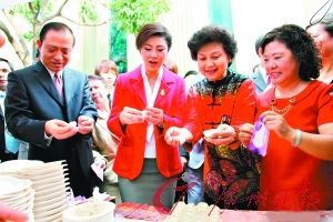 英拉代表泰国人民向中国人民致以新春佳节的问候,她用稍显生涩的中文说:“春节快乐!呼吁所有泰国民众团结起来,共同为泰中友谊的发展作出贡献。”英拉还在大使夫人吴慧卿的示范下学习包饺子。(黎藜)