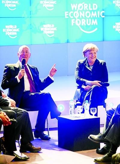 世界经济论坛主席施瓦布(左)和德国总理默克尔出席开幕式。新华社 发