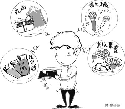 粗略统计,在动辄过万的过节费中,孝敬父母的大红包以及送给其他长辈、小辈的人情礼占了大头,这也是过年开销难以承受的压力所在。为此,给红包减负成为年关花钱花怕了的“年清族”们最强的呼声。