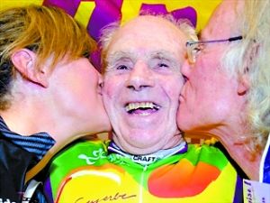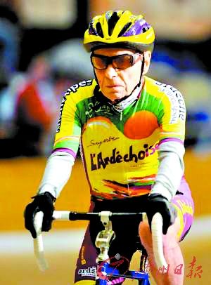 本报讯 据外媒报道,百岁高龄的法国自行车爱好者罗伯特·马尚17日打破世界纪录,他在1小时内骑自行车达24.25公里,打破了百岁以上老人1小时内骑自行车路程的世界纪录。