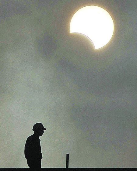 图为21日江苏扬州市拍摄的日偏食天象