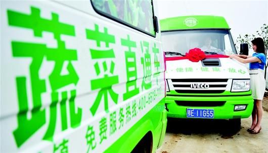湖北日报讯 昨日,宜昌市城郊蔬菜示范基地在夷陵区鸦鹊岭镇蔬菜专业合作社的蔬菜基地里正式开园(左图),放心蔬菜直通车同时启动(右图),这些新鲜、绿色无公害蔬菜通过超市、宾馆饭店、批发市场等途径直接上了市民餐桌。该基地是宜昌市“万亩菜篮子”工程力推的重点民生项目之一。 (本报视界网 张国荣 摄)