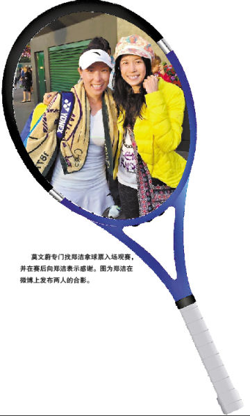 输掉了比赛,很多球员都会闭关自责,而郑洁则一如既往地活跃,还频繁刷微博爆料。原来,赛后著名歌手莫文蔚在球场“追星”,和郑洁一起聊天、合影留念。