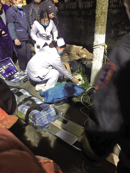 穿着薄毛衣和保暖裤的李代波,将手机交给旁人后,顺着绳索缓缓下到两米多高的堡坎下方。桃花溪水冰冷刺骨,水深1.2~1.5米。紧接着,又有几名市民沿着绳索滑了下来,加入到救援队伍当中。