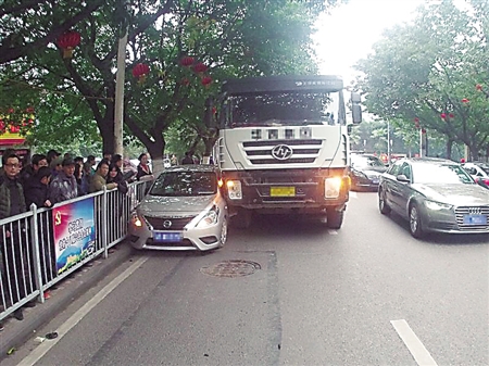 重庆商报讯 9日13时许,一辆水泥罐车在南岸区弹子石涂山路变道时,将一辆轿车挤上了路沿,两车均不同程度受损。罐车司机事后委屈地表示,重庆道路太窄了,弯又多,自己来自外地,还没适应过来,才导致了事故的发生。