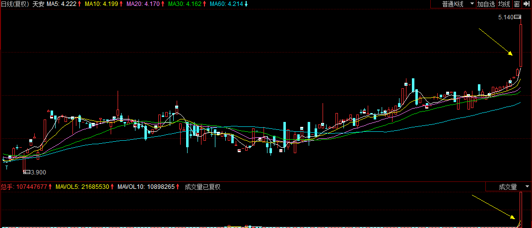 智通财经注意到,2月17日天安最高价为5.14元,已经突破了最近的一次最高点,即2015年6月26日创下的5.08元。