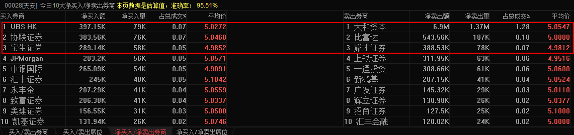 智通财经注意到,根据交易宝统计的净买入、卖出券商统计情况来看,2月17日当天净买入的前三名券商分别为UBS HK、协联证券、宝生证券,金额分别为39.7万、38.4万、28.9万;而净卖出前三名分别为大和资本、比富达、 耀才证券,金额分别为690万、54.4万、38.9万。