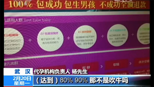 代孕机构负责人 王先生:包成功,简单一点,就是我们在2年之内,给你们(生)一个健康的宝宝,到时候抱孩子就完事了,不管出什么情况,比如说到时候孩子畸形呀,不健康呀,这些情况,通通我们来处理。